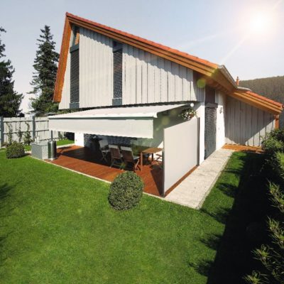 Gönnen Sie sich ein Maximum an Schutz: Vor tiefstehender Sonne, neugierigen Blicken oder einem lauen Sommerlüftchen. Unsere Seiten-Markise ist mit nur einem Handgriff kinderleicht herausziehbar.
